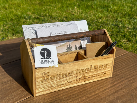 Thank you for choosing to take a break to review this decorative gift. The Manna Tool Box is a toolbox containing messages of hope from God in our uncomfortable storms in life. Inspired by the song 'Until the Whole World Hears' by Casting Crowns. We sing and pray God's love over you.