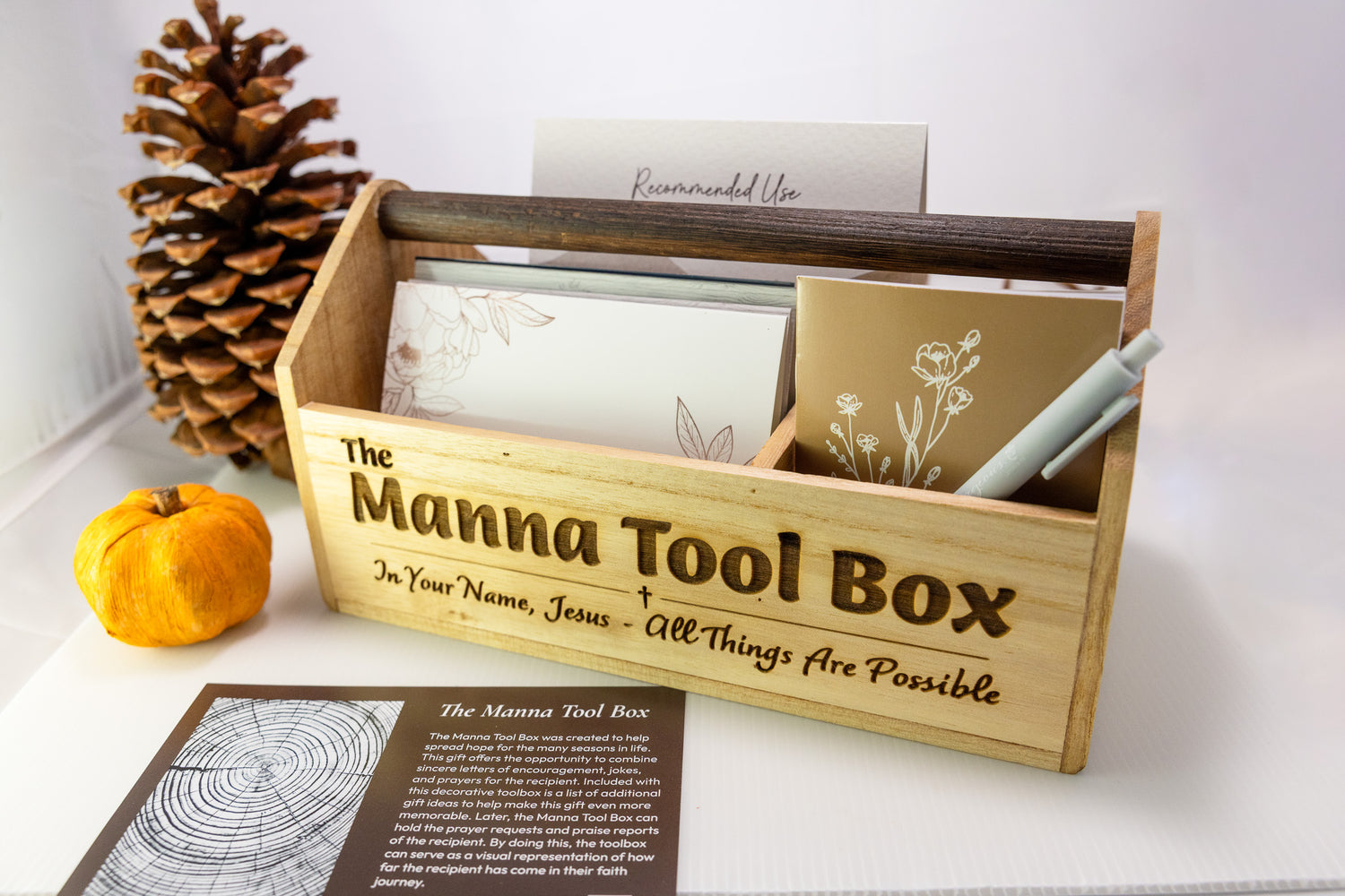 Thank you for choosing to take a break to review this decorative gift. The Manna Tool Box is a toolbox containing messages of hope from God in our uncomfortable storms in life. Inspired by the song 'Until the Whole World Hears' by Casting Crowns. We sing and pray God's love over you.